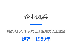 凱豪閥門有限公司位于溫州海濱工業(yè)區(qū),企業(yè)占地面積20000平方米。初建于 1985 年,注冊資金5008萬;工廠主要生產(chǎn) ANSL、JIS、DIN 和 GB 標(biāo)準(zhǔn)的閘閥、截止閥、止回閥、球閥、蝶閥、